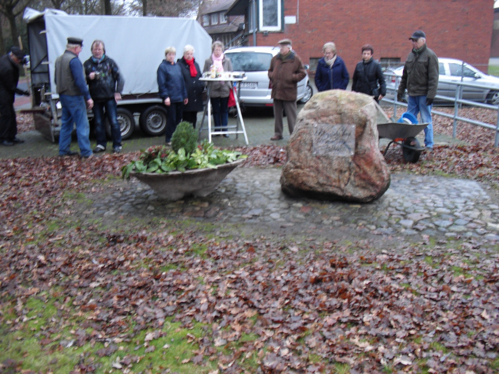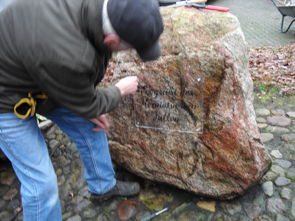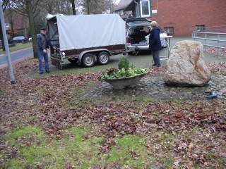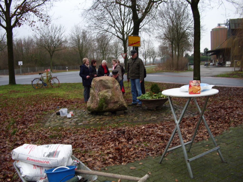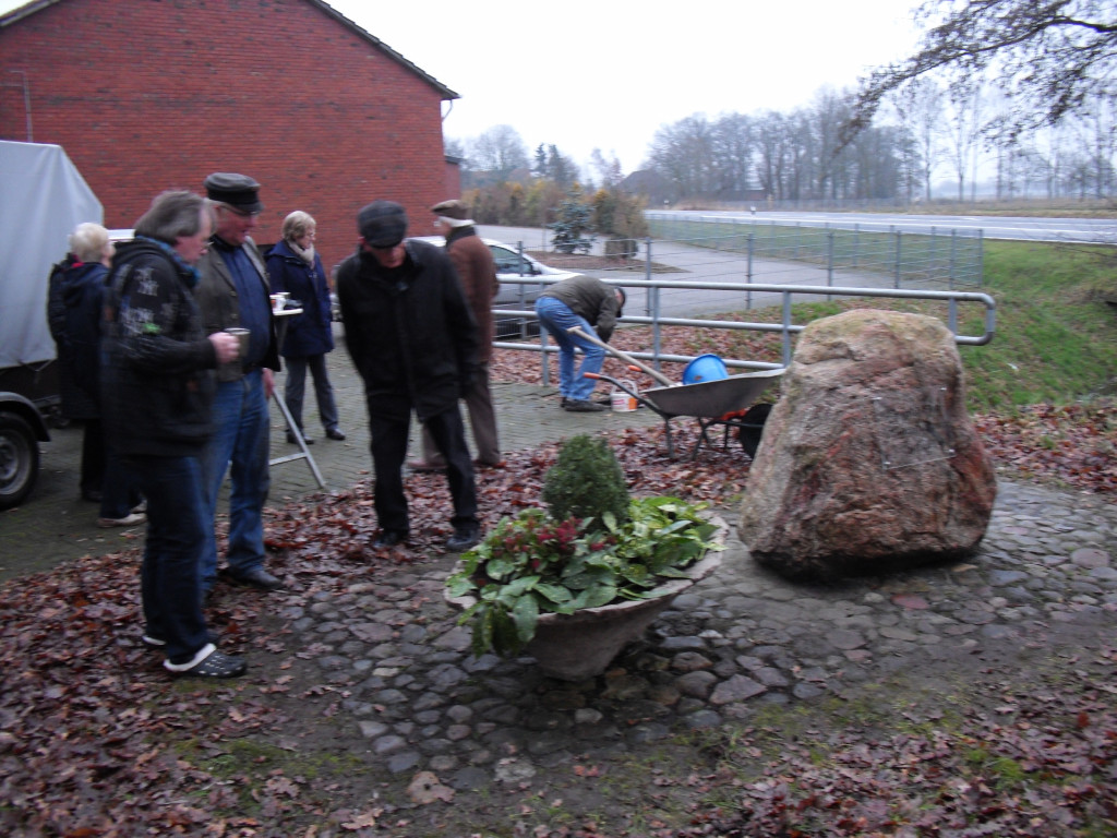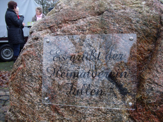 Nur der Findling an der Einfahrt zwischen Groß- und Klein-Fullen sah etwas kahl aus. So wurde dort noch ein zusätzlicher Blumenkübel aufgestellt und am Freitag, dem 04.01.2013 eine Begrüßungstafel angebracht.