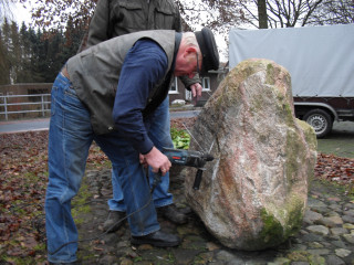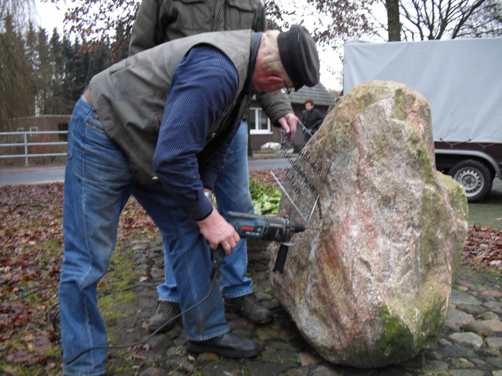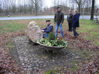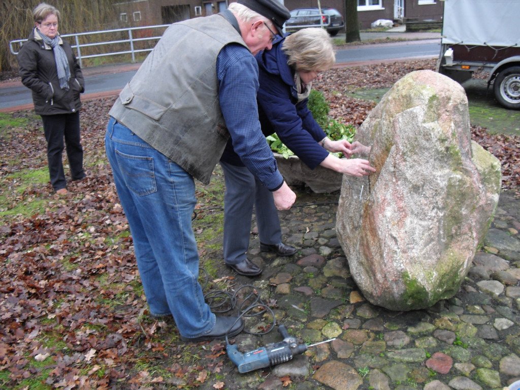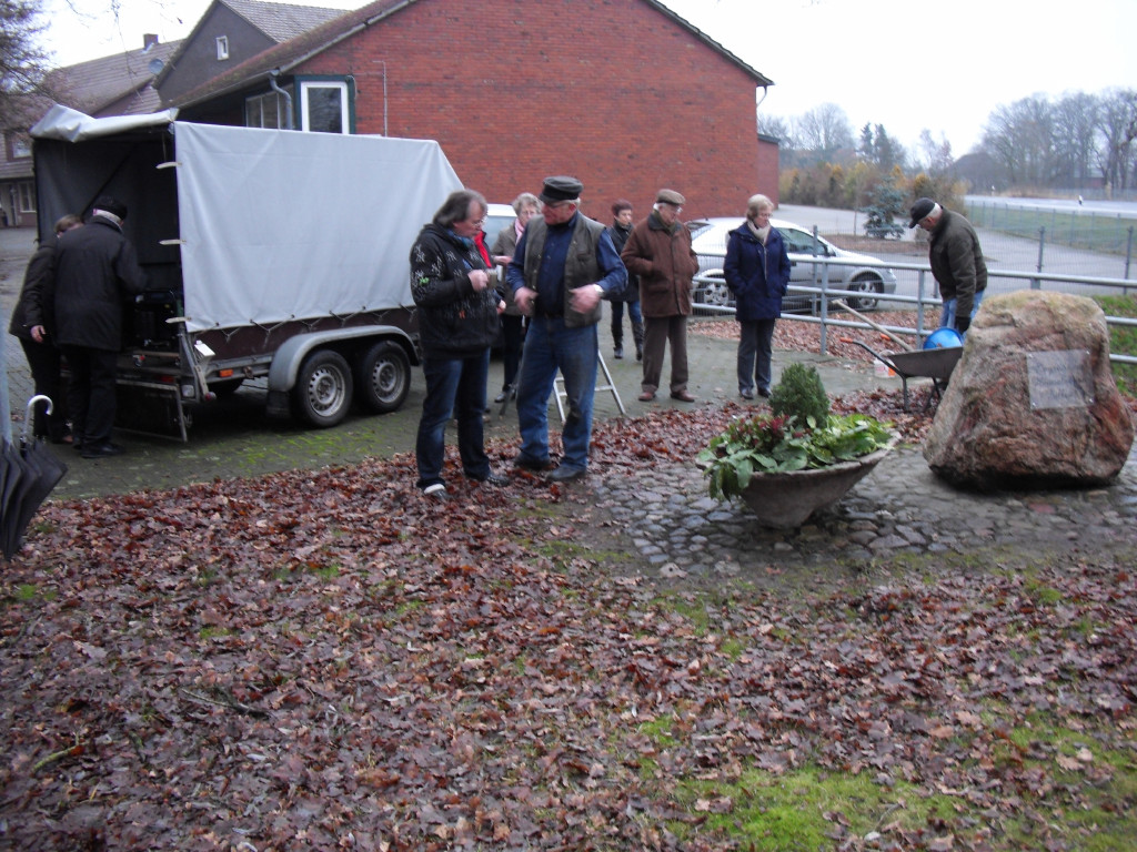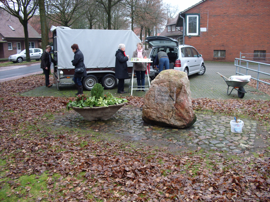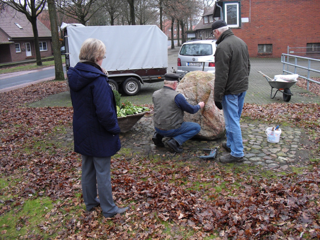 Nur der Findling an der Einfahrt zwischen Groß- und Klein-Fullen sah etwas kahl aus. So wurde dort noch ein zusätzlicher Blumenkübel aufgestellt und am Freitag, dem 04.01.2013 eine Begrüßungstafel angebracht.
