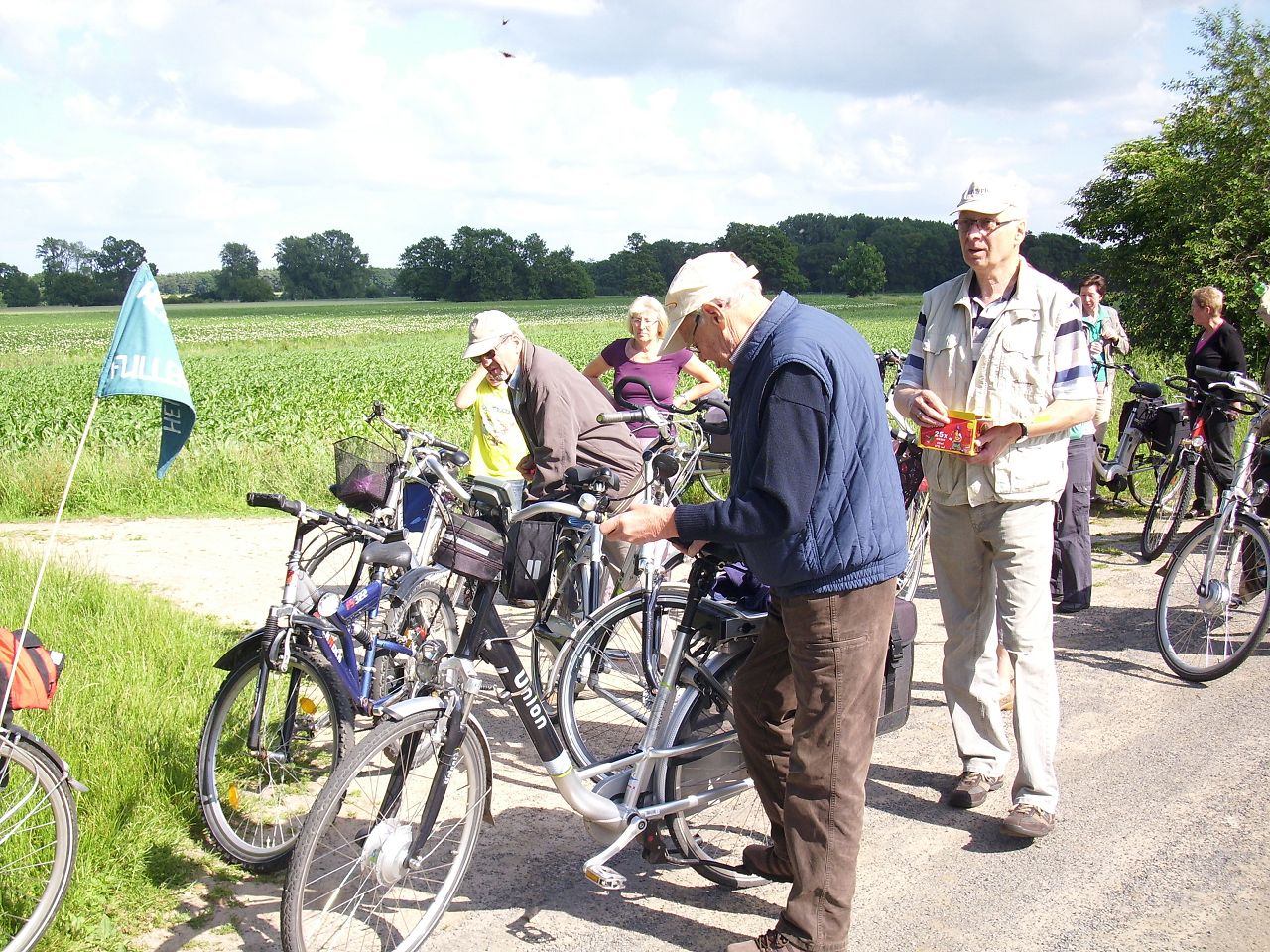 Die diesjährige Radtour des Heimatvereins begann wie üblich bei der Gaststätte Gebken in Fullen und führte über Rühle und Hesepe zur ersten Rast am Moormuseum, dann weiter durchs Moor bis nach Füchtenfeld. Hier wurde zu Mittag gegessen. Gut gestärkt ging es weiter über Dalum nach Geeste zur Gaststätte Zur Fähre. Dort gab es Kaffee und Kuchen. Von dort ging es über den Ems-Radweg zurück nach Fullen. Ca. 64 km insgesamt. .