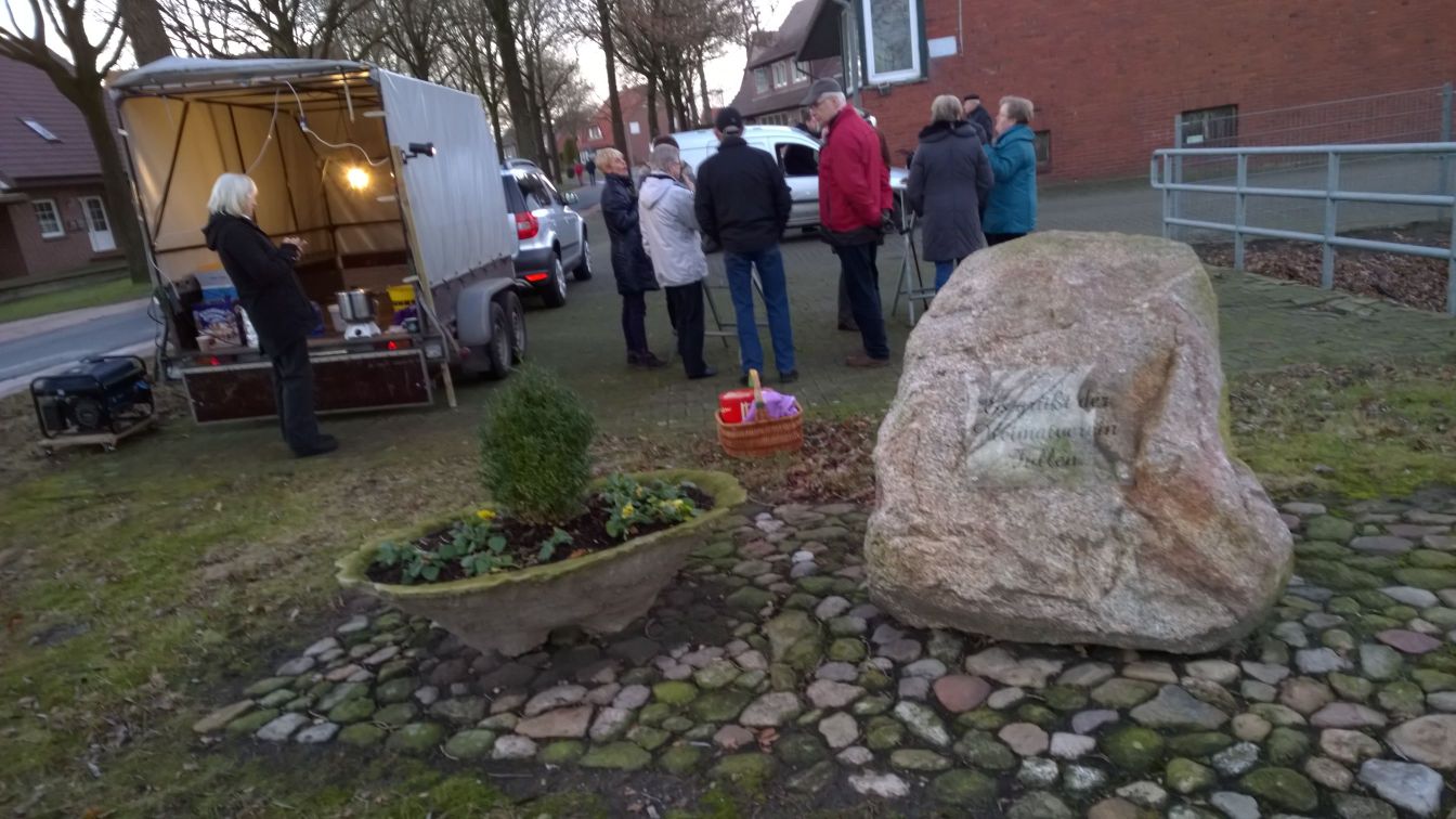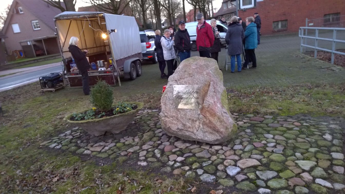 Weil es uns in 2013 und 2014 so gut gefallen hatte, wurde auch in 2015 wieder ein Treffen am Stein (steht Große Straße bei der Einfahrt nach Groß Fullen) veranstaltet. Glühwein, Spekulatius und Neujahrskuchen schmeckten allen Und: diejenigen, die kommen, werden immer mehr!.